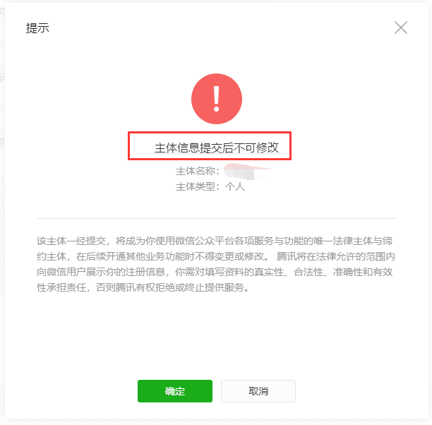 请确认主体信息的正确性,提交后不可修改。